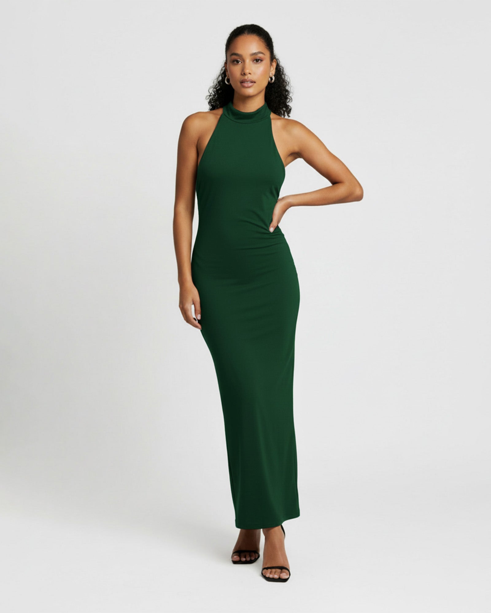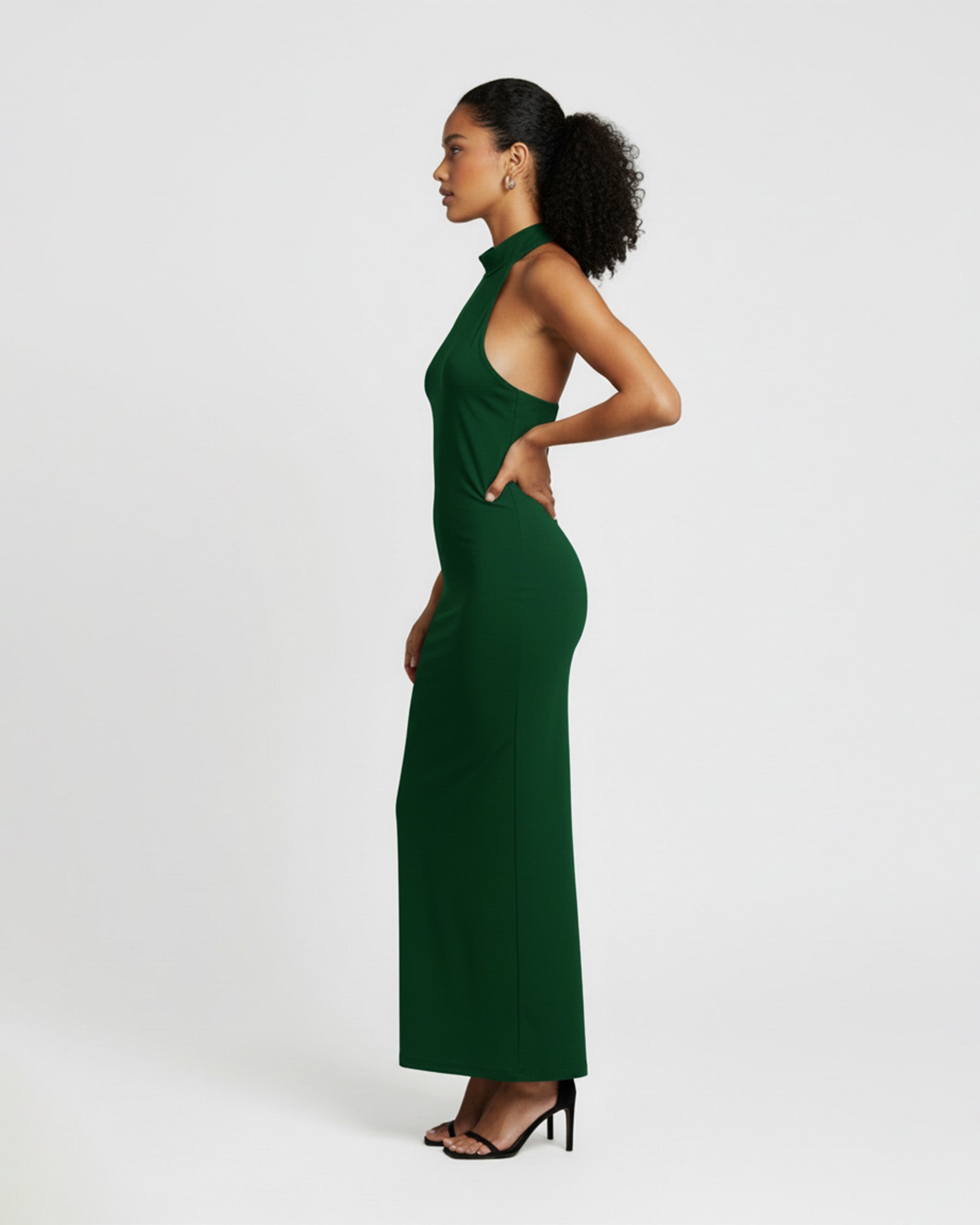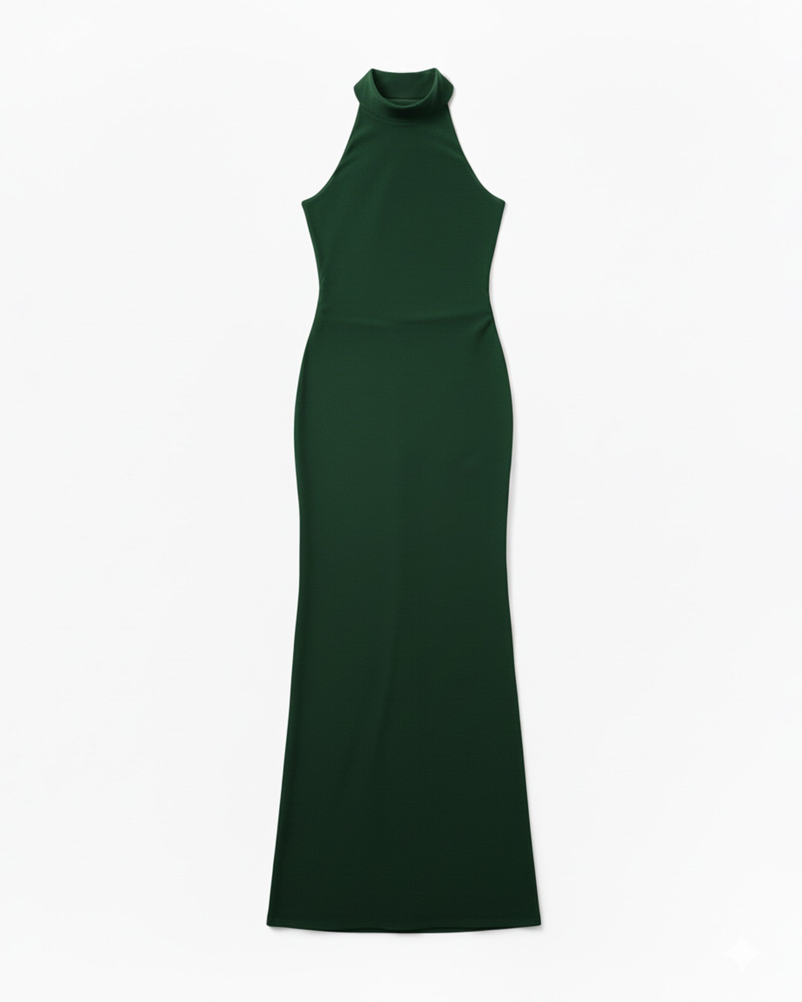 * Kesim: Yüksek yaka, sırtı açık, vücuda oturan uzun silüet