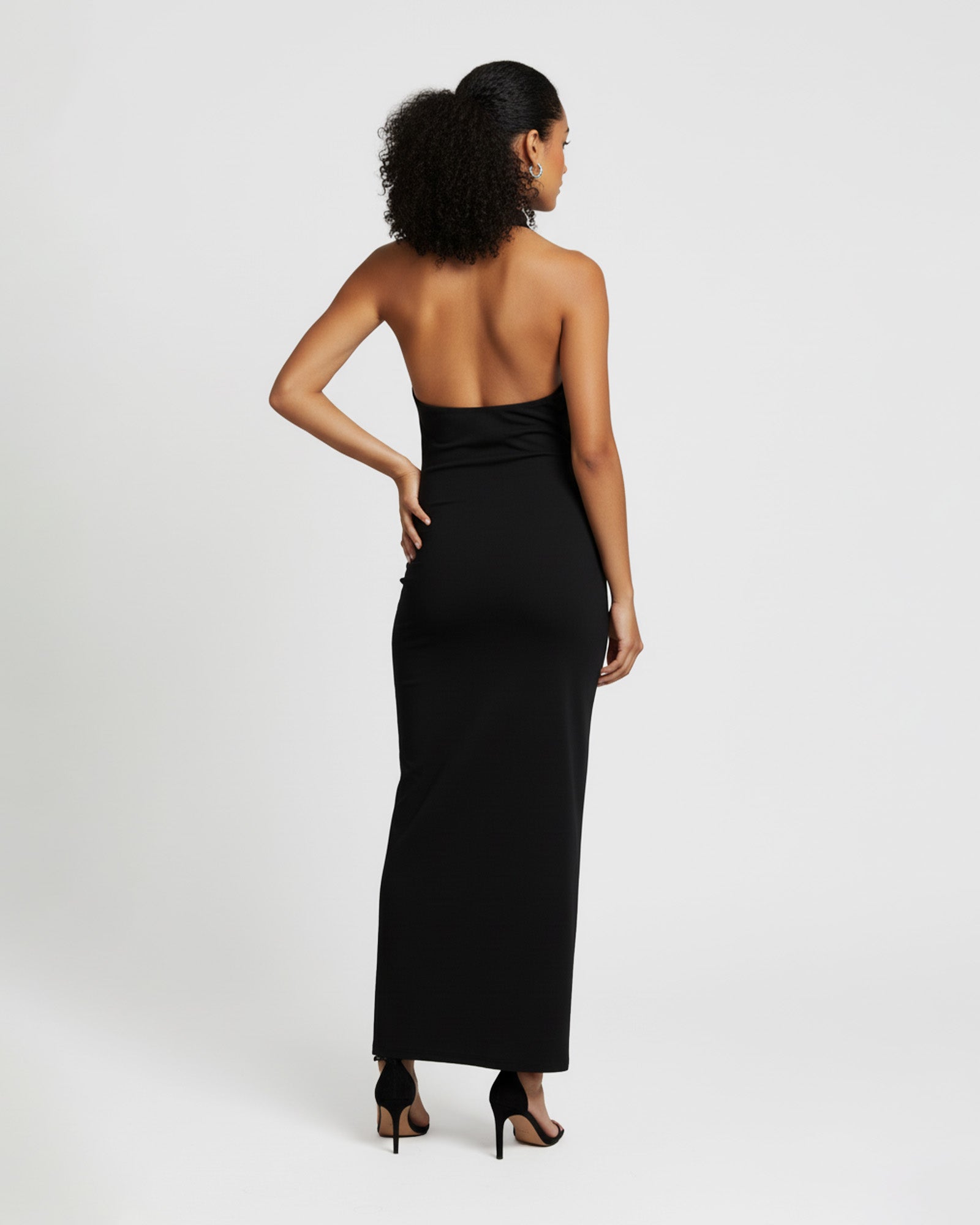 * Kesim: Yüksek yaka, sırtı açık, vücuda oturan uzun silüet