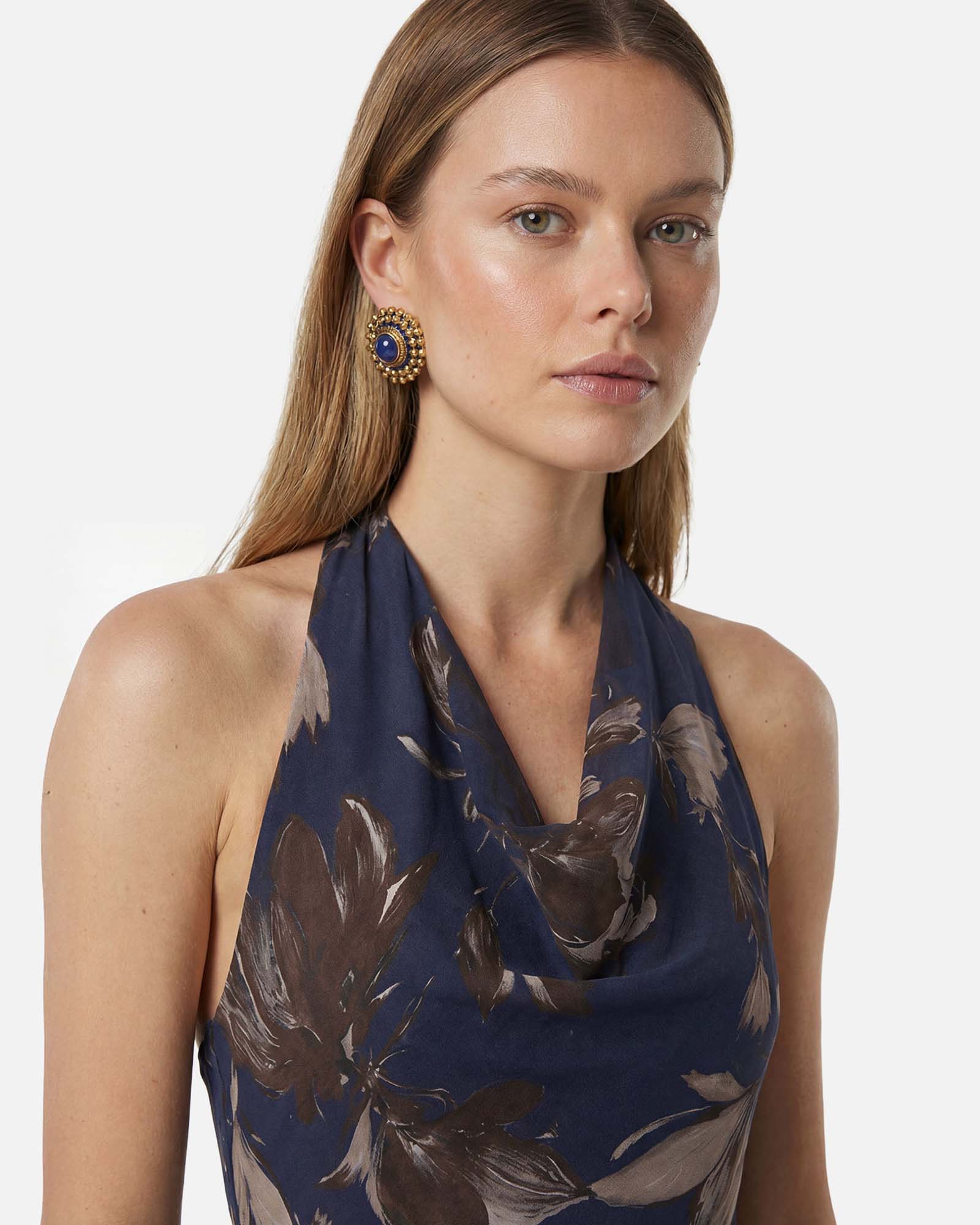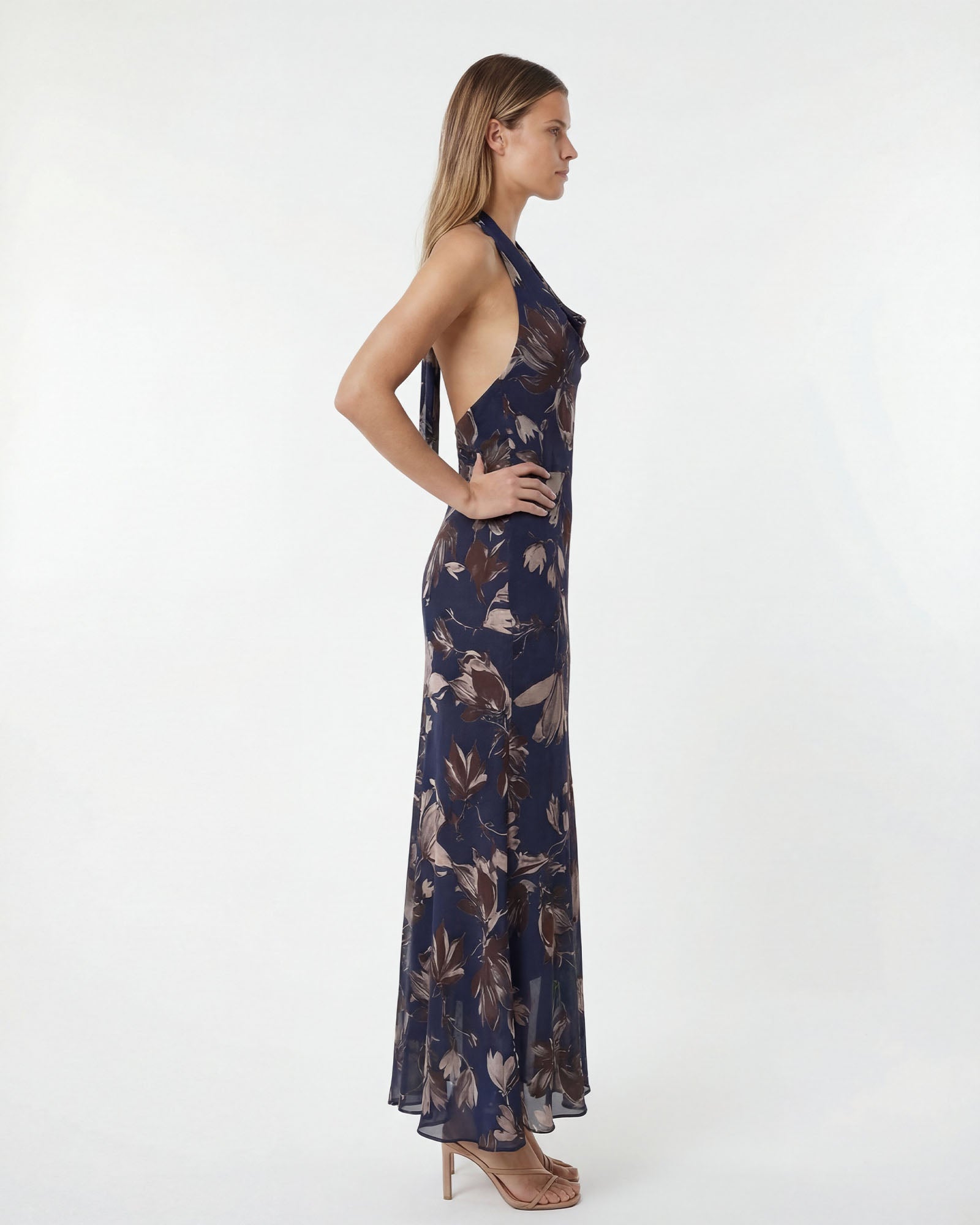 The BLOOM Elbise her adımda doğal bir akış sunan, hafif baskılı şifonla hayat bulan zamansız bir tasarımdır. Halter yakası omuzları zarifçe vurgularken, gövde boyunca dengeli ve rafine bir duruş sağlar.